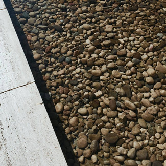 Nada más subir esos peldaños encuentras una gran balsa de agua de unos 30 cm de profundidad donde en el fondo encuentras piedras de río erosionadas recordando a aquellos lagos creados en la cultura oriental que transmiten paz y serenidad. Una gran edificación se halla a tu alrededor con unos materiales que transmiten pureza y naturaleza por cada rincón del pabellón. Es famoso por la fusión entre las distintas zonas y la intencionada disolución de las fronteras entre los espacio interiores y exteriores, creando un recorrido fluido y continuo.