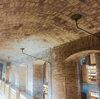 Se originan espacio con alturas de escasos dos metros y pico, hasta espacio con más de 13 metros de altura, este espacio se encuentra en el centro de la edificación donde encontramos claraboyas donde entra la luz cenital del exterior. Espacio donde encontramos mesas para el estudio bajo las bóvedas, lugar esplendido para el estudio y la concentración.